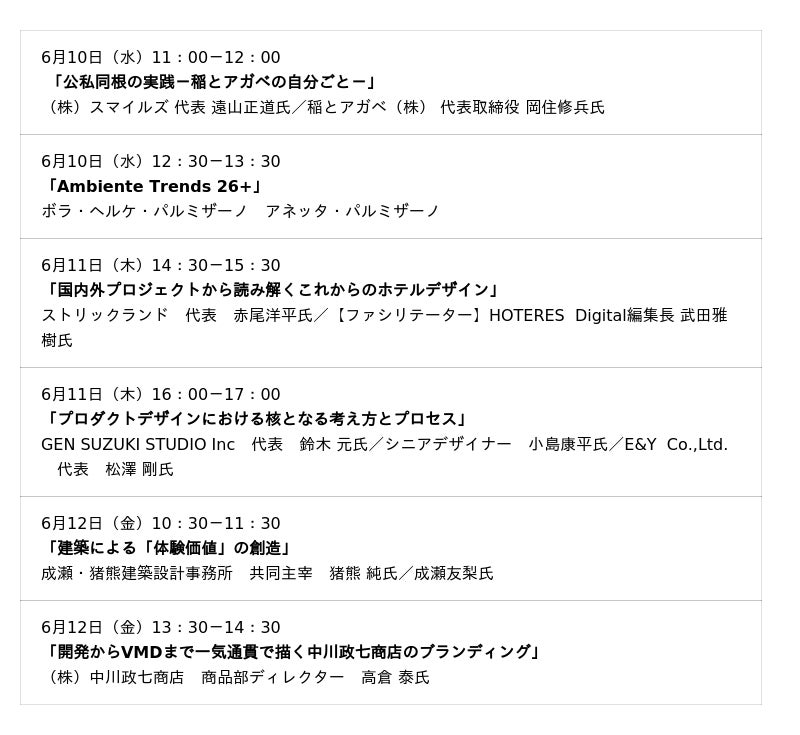 会期中は、業界のキーパソンによるトークセッション「LIFESTYLE SALON(ライフスタイルサロン)」を3日間通じて12本開催します。