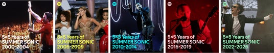 - 公式プレイリストとビデオポッドキャストでサマソニ25年の歴史を振り返るSpotify限定コンテンツ「5x5 Years of SUMMER SONIC」も本日公開
