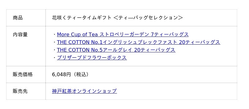 日頃なかなか伝えられない「ありがとう」の気持ちを、心ほどける紅茶時間と華やかなお花にのせて届けたい。そんな想いから生まれた、「花咲くティータイムギフト」です。紅茶鑑定士こだわりの紅茶と、彩り豊かなプリザーブドフラワーを組み合わせたセットは、目で楽しみ、香りに癒され、味わってくつろぐ、五感で楽しむ贈り物に仕上げました。