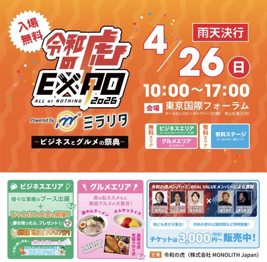 ・「令和の虎EXPO」が東京国際フォーラムで開催決定!