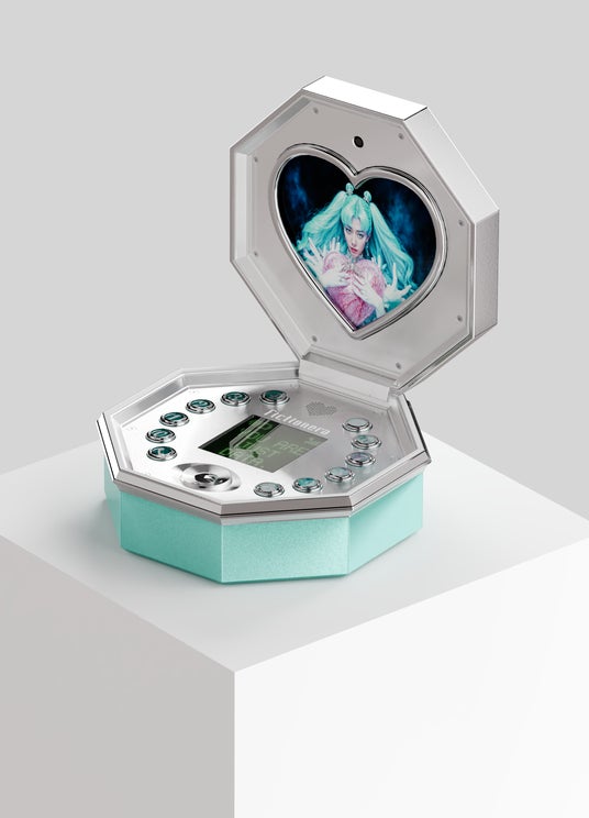 《Magical Compact 02: Aqua Halo》(2026) Plastic, AI-Photography printed on acrylic