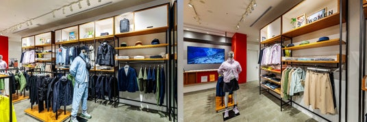 左写真:ストア正面からアパレル全体、右写真:ストア内からアパレル全体