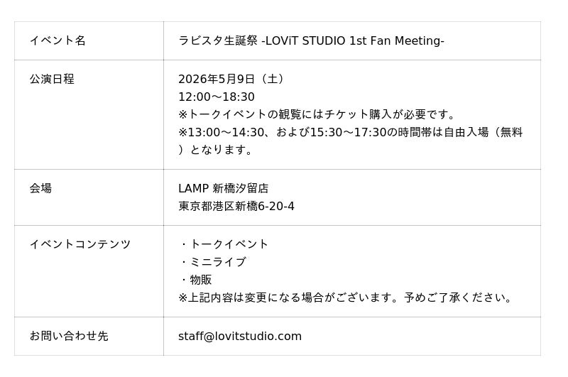 ラビスタ公式X:https://x.com/LOViT_STUDIO