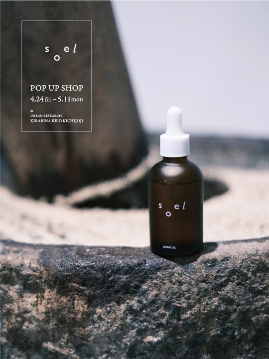 また発売に合わせ、URBAN RESEARCH キラリナ京王吉祥寺店では soel POP UP SHOPを4月24日(金)から5月11日(月)までの期間で限定開催。5月2日(土)と3日(日)の2日間は、オリジナルフレグランスを作るワークショップも開催。