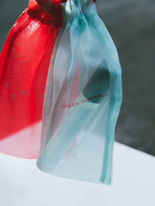 また特別な巾着をセットでご用意。シアー感のある爽やかな袋にもご注目ください。