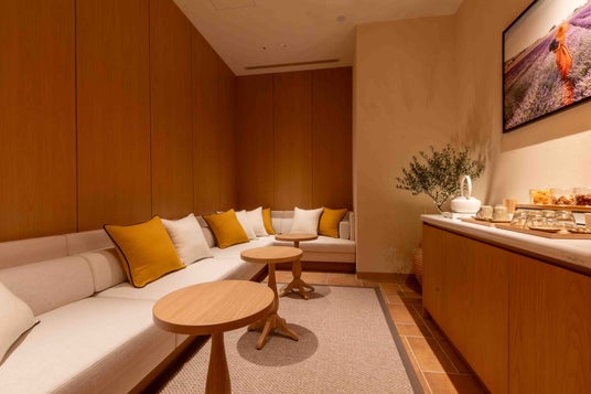 そしてトリートメント後は、リラクゼーションルームへ。オート・プロヴァンスの太陽の光を表すロクシタンのブランドカラーのイエローが温かみを添え、安らぎのある空間を演出します。ロクシタンカフェでも提供しているハーブティーを自由に楽しみながら、トリートメント後のリラックスタイムをお楽しみいただけます。
