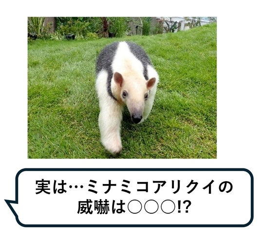 ミナミコアリクイの最大の武器は、長く頑丈な前足の爪。敵と対面したときに、ミナミコアリクイは どのような姿で自分の強さを示すのか…。その姿は会場でお確かめください!