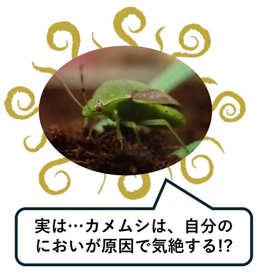 ●カメムシのにおい体験コーナー過去開催時に反響のあった、カメムシのにおい体験コーナーが再登場!カメムシは、敵に襲われると、足のつけ根から強烈なにおいを放つ液体を発射して敵を撃退します。この 刺激臭を再現するために、実際に調香師がにおいを嗅いで、リアルに近い状態に調香しました。ぜひ会場で、カメムシの強烈なにおいを体感してください!