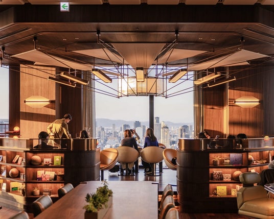 ホテル最上階33階、地上約135メートルに位置するバー&ラウンジ「スモーク&スピン」。大阪の街並みを一望する開放的な空間で、初夏の光を感じながらゆったりとした時間をお過ごしいただけます。
