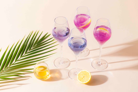 タイで親しまれているバタフライピーティーを使用、色が変わるウェルカムドリンク
