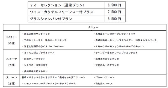 販売価格   アフタヌーンティー/イブニングハイティー共通(おひとりさまあたり/税サ込)