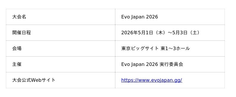 Razer Japan株式会社(東京都、以下Razer)は、2026年5月1日(木)から5月3日(土)までの3日間にわたって東京ビッグサイトにて開催される世界最大級の格闘ゲームイベント「Evo Japan 2026」に、公式チェアパートナーとして協賛いたします。本大会では、Razerの最新ゲーミングチェア「Razer Iskur V2 NewGen」が公式チェアとして採用され、トッププレイヤーの競技環境をサポートします。