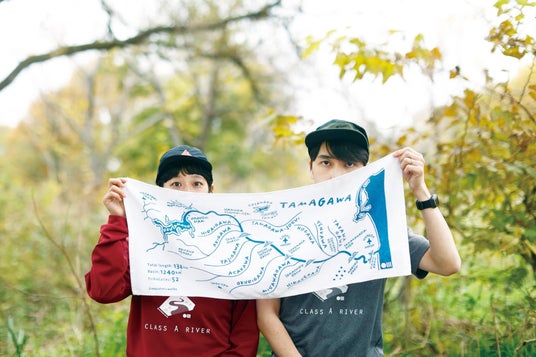 流域を描いた手ぬぐいやTシャツ、キーホルダーなど、多摩川を身近に感じるアイテムを販売。