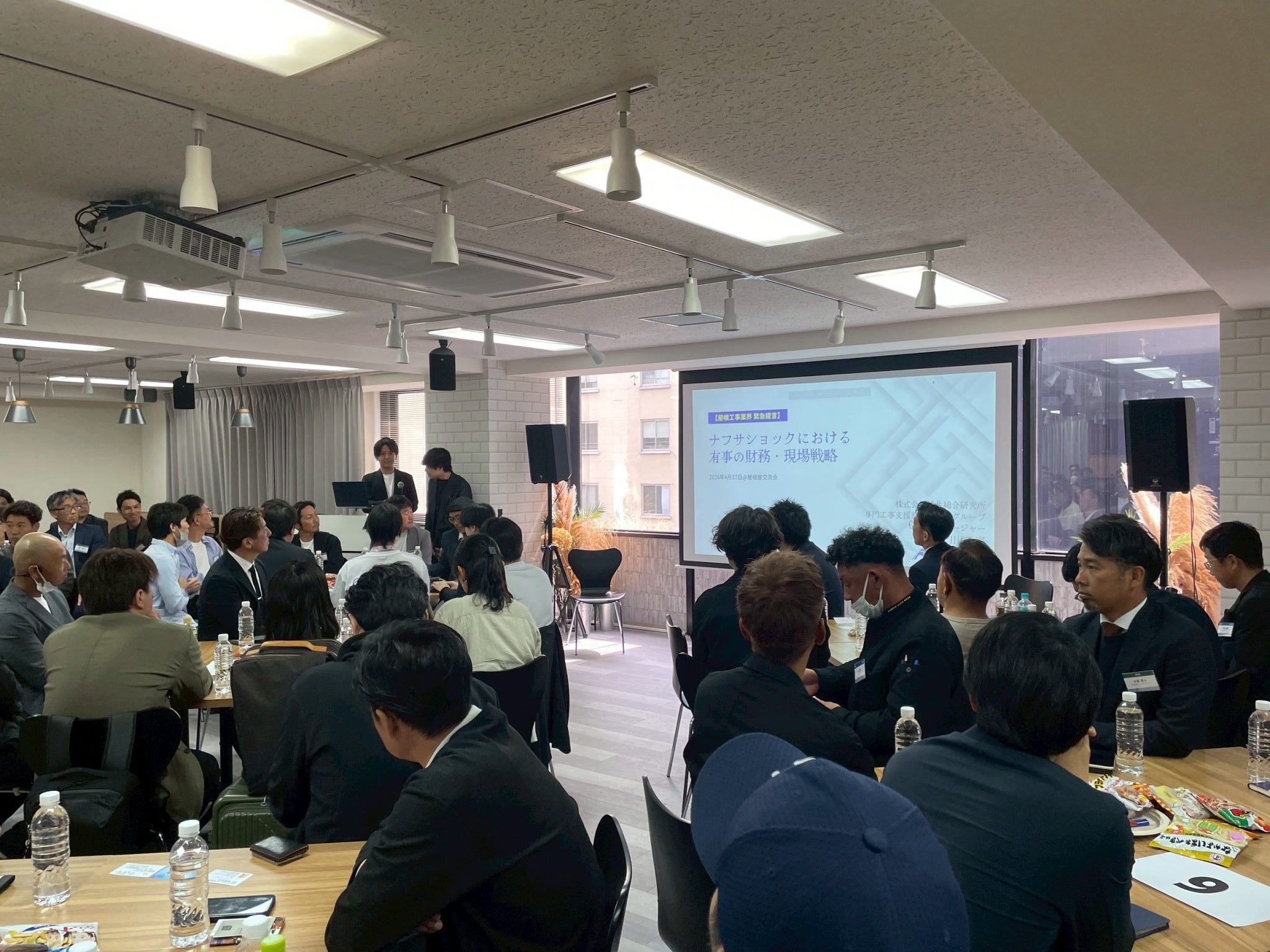 「ここを生き残れば屋根会社にとってはチャンス」という言葉で締められた10分間の緊急提言。手元資金3ヶ月以上の確保、借入戦略(金額・スピード・期間>金利の低さ)、価格転嫁漏れを防ぐ契約書特別条項など、具体的な行動提言がなされ、会場の空気が引き締まりました。