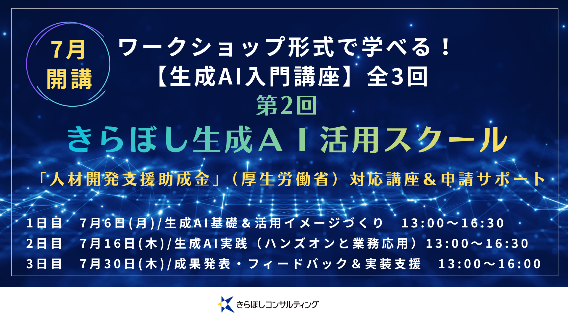 生成AIは既に身近なツールと言えますが、業務で使いこなせているという企業はまだ少数かもしれません。しかし、今後はどのような業界においても生成AIとの共存が必要とされるのではないでしょうか。特に人材不足によるさまざまな課題を抱える中小企業において、生成AIツールの活用は優先課題ともいえます。きらぼしコンサルティングでは、生成AIの活用を進めたい中小企業向けに昨年初めて同スクールを実施、大変好評を得たことから今年も開催いたします。