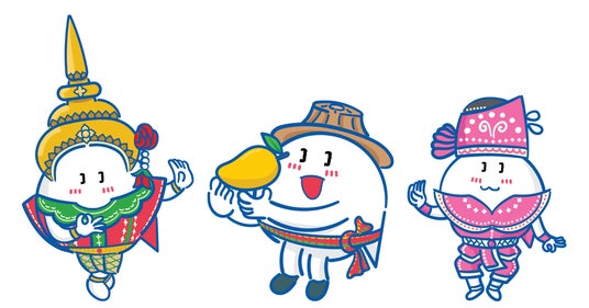 2025年から登場したタイフェスティバルのマスコットは、Thai Festival の文字「a」から生まれました。とんがったシルエットは「ピン留め」をモチーフにしていて、クリエイティブの新たなランドマークであることを伝えています。会場ゲートや大使館ブース前にマスコットのスタンドを用意していますので、お楽しみに。