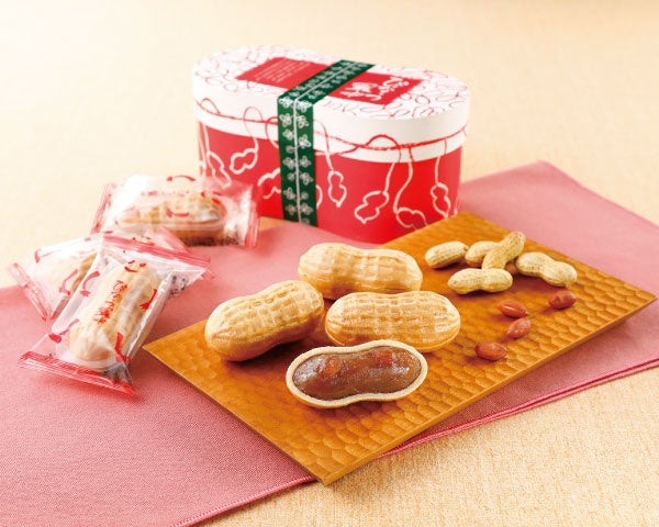 風味豊かなぴーなっつの甘煮が煉り込まれた餡を愛らしい落花生の形の最中種に詰めました。