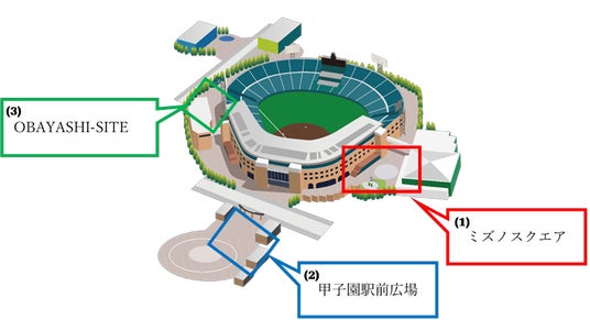 (阪神甲子園球場外周ミズノスクエア、甲子園駅前広場、OBAYASHI-SITE)
