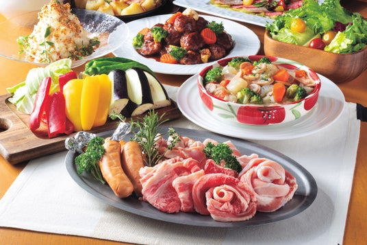 お肉とお野菜をバーベキュースタイルでお楽しみいただけるプラン。加えて、デリプランの約30種類のデリビュッフェ(時間無制限)をお楽しみいただけます。