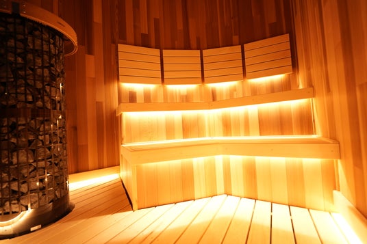 2025年にリニューアルされたサウナ。セルフロウリュと外気浴で“ととのう”ゴルフ体験を。 サウナ室(男性)
