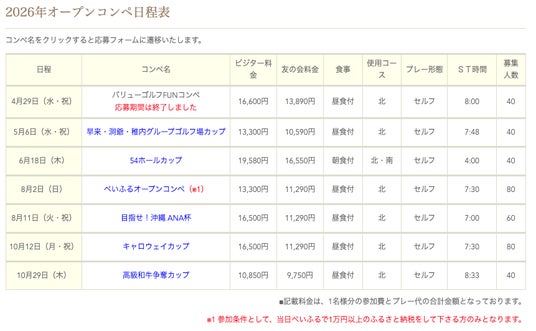 北海道・新千歳空港近くの早来カントリー倶楽部 | 豪華賞品が狙える「季節ごとの特別冠コンペ」や「月1木曜コンペ」など、1人から参加OK!2026年度オープンコンペ日程を公開!